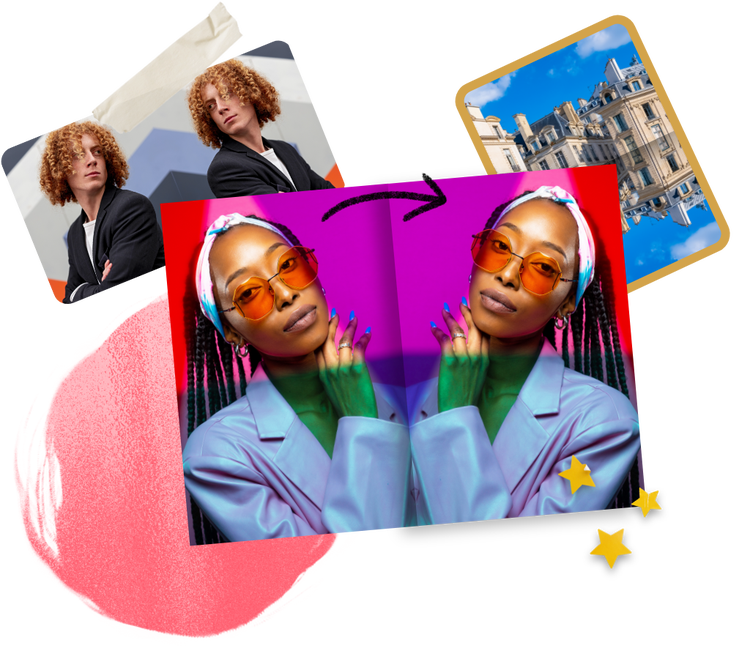 Pour créer un effet de miroir à l'aide de l'outil de retournement d'image, commencez par dupliquer la photo ou l’image de votre choix. Ensuite, retournez l'une des images et alignez-les l'une à côté de l'autre pour obtenir un effet de miroir symétrique.