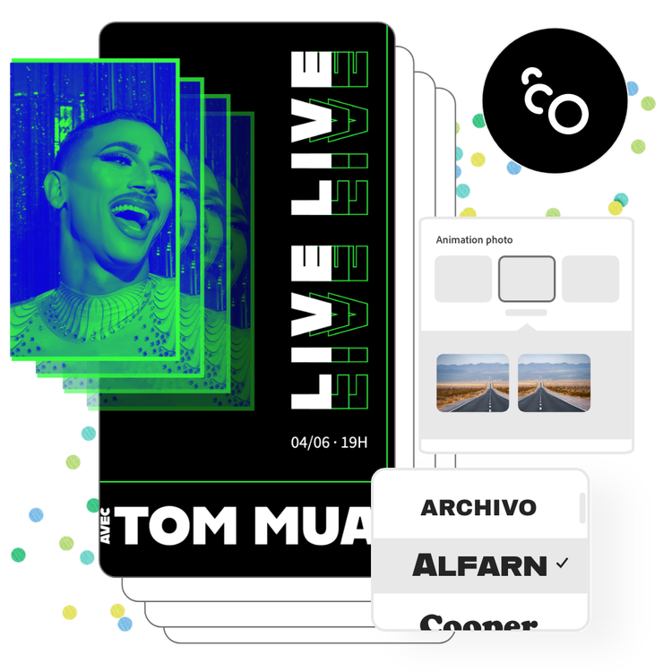 Sélectionnez votre photo, ajoutez des icônes, du texte et des graphiques, puis jouez avec les options d'animation pour donner du mouvement à votre création.
