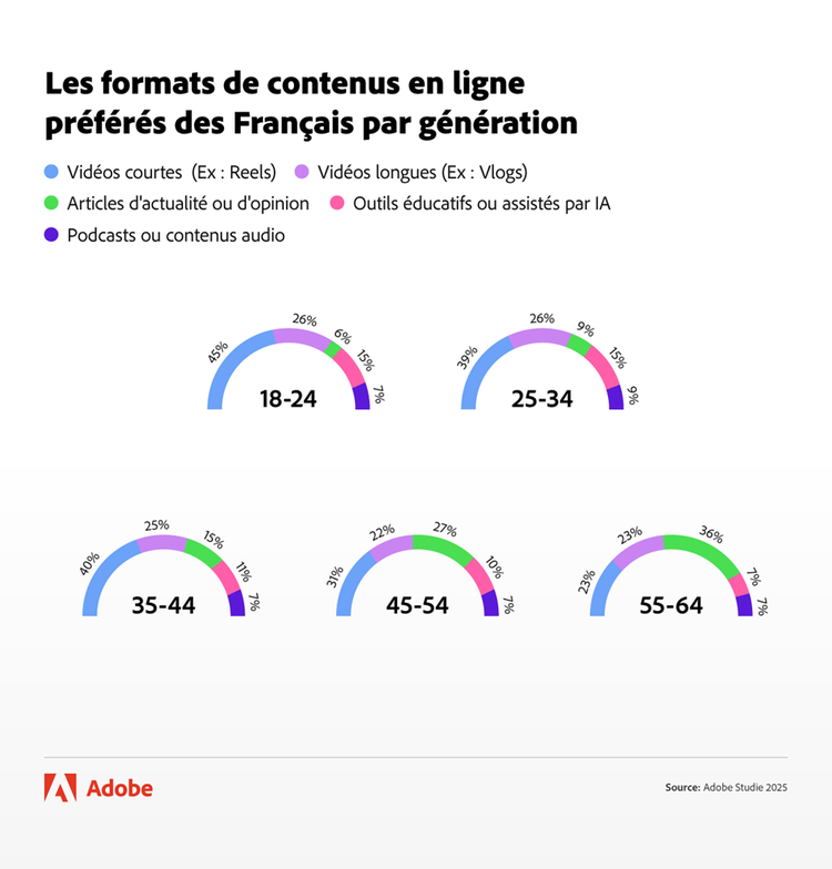 Si ce n'était pas encore évident, le contenu court et les nouvelles plateformes restent rois pour les Milléniaux et la Génération Z, tandis que les générations plus âgées préfèrent des formats plus lents qui ne mettent pas systématiquement la vidéo au premier plan.