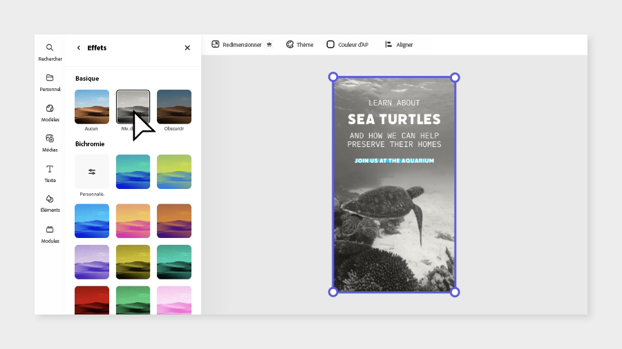 Vous pouvez appliquer le filtre Niv. de gris pour apporter une touche plus sérieuse à votre vidéo.