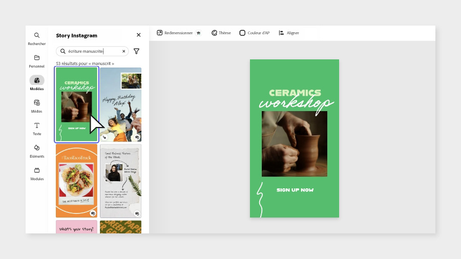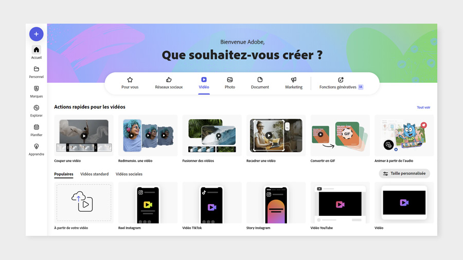 Démarrez rapidement votre projet à l’aide d’un modèle Adobe Express adapté au réseau social de votre choix et à votre style.