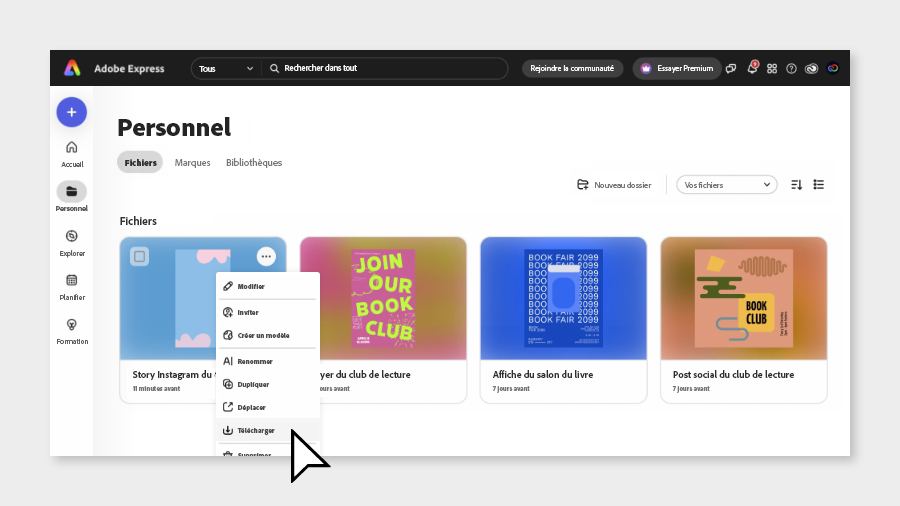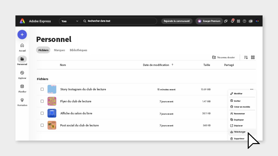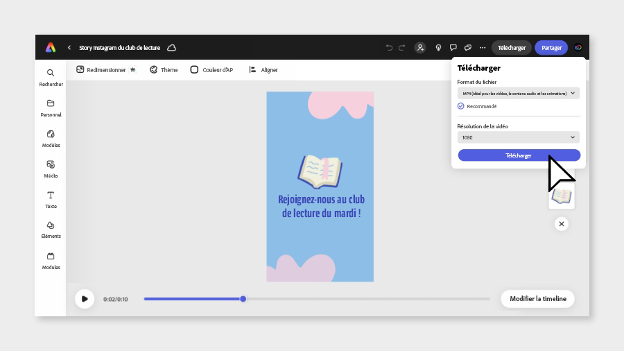 Pour exporter une vidéo Adobe Express affichée dans l’éditeur :
