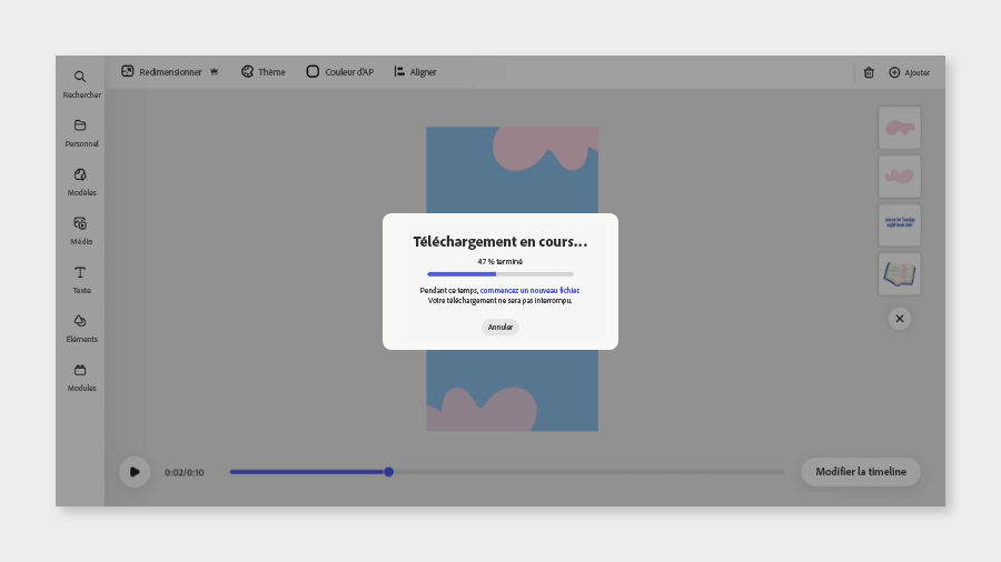 Vous pouvez travailler sur d’autres projets pendant le téléchargement de votre vidéo.