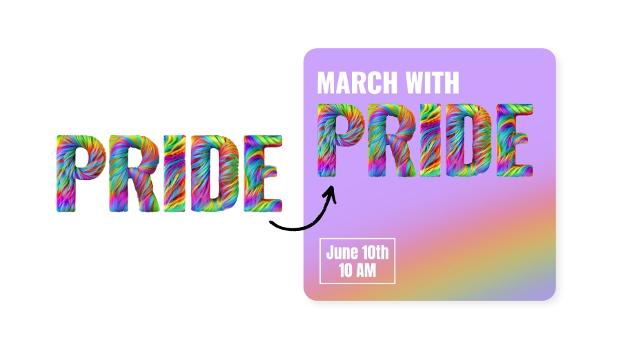 Les effets de texte IA d’Adobe Firefly se prêtent à la création d’images colorées et dynamiques pour la Marche des fiertés mettant à l’honneur la communauté LGBTQIA+. Levez haut ce drapeau et relookez totalement un modèle Pride dans Adobe Express en ajoutant, par exemple, « Fourrure arc-en-ciel » pour représenter toutes les sensibilités.