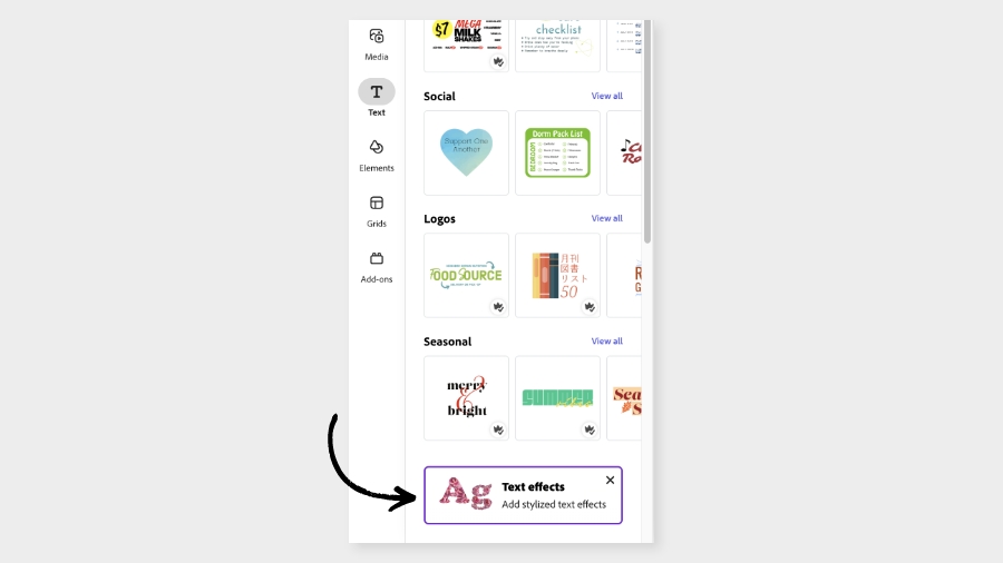 Si l’effet de texte de vos rêves ne figure pas parmi les exemples prégénérés, n’ayez aucune inquiétude. Cliquez sur l’option typographique de votre choix, à gauche, pour commencer à créer le vôtre.