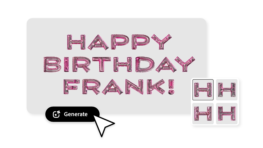 Vos proches n’ont croiront pas leurs yeux en découvrant les détails surréalistes de vos cartes d’anniversaire et la créativité que vous y insufflez. Quoi de plus original que des bougies, si ce n’est des ballons de baudruche métallisés, pour former les lettres d’un prénom ? Le modèle ci-dessous se prête parfaitement à cet exercice, totalement personnalisable. Mettez-en plein la vue avec un effet de texte généré à partir d’un prompt dans Firefly, comme « Ballon rose métallisé à l’hélium avec ficelle », et basculez dans Adobe Express pour finaliser la mise en page de votre carte d’anniversaire ultrapersonnalisée.