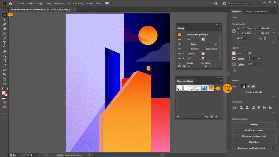 12. Enfin, sélectionnez une autre partie du dessin à l'aide de l'outil Sélection (V) et cliquez sur le style que vous venez d'ajouter pour appliquer l'effet de texture granuleuse.