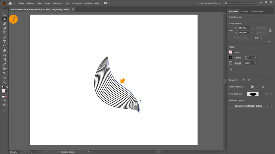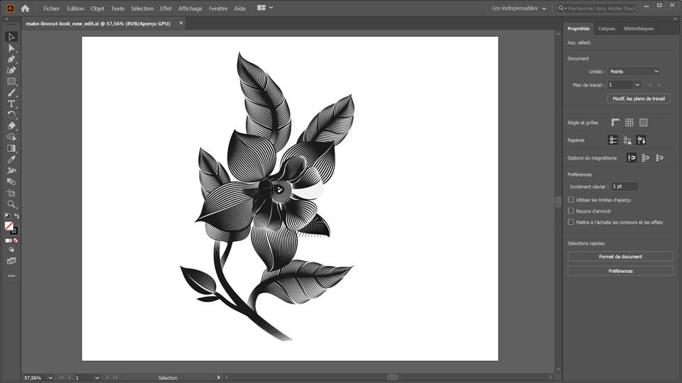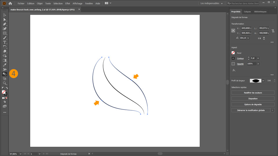 Apprenez à utiliser les outils Plume et Dégradé de formes pour créer un effet de linogravure.