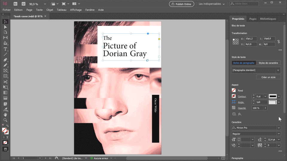 1. Téléchargez lesfichiers d’exemple et ouvrez le fichier book-cover.indd.