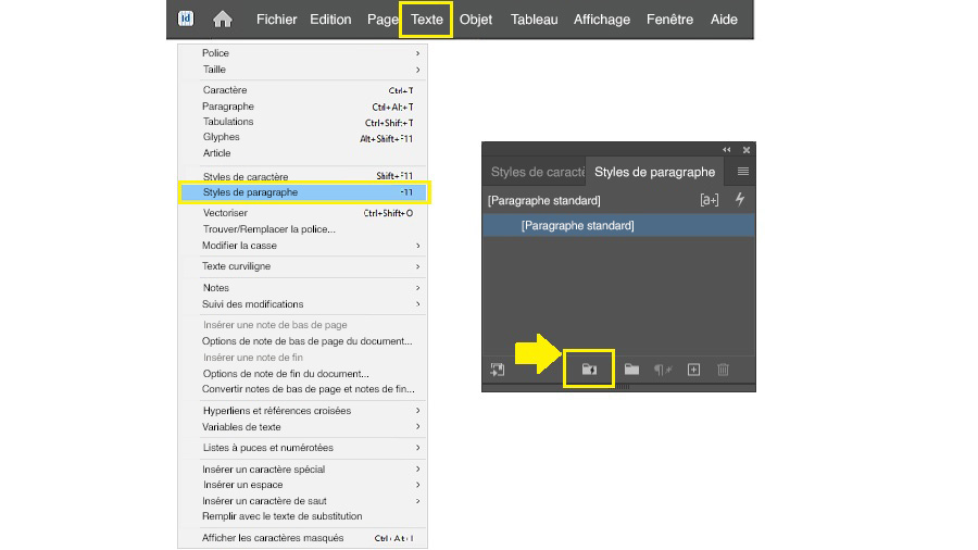 Pour ouvrir le menu Styles, choisissez Styles de paragraphe dans le menu Texte.