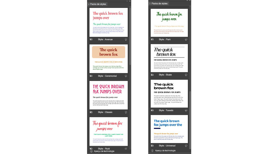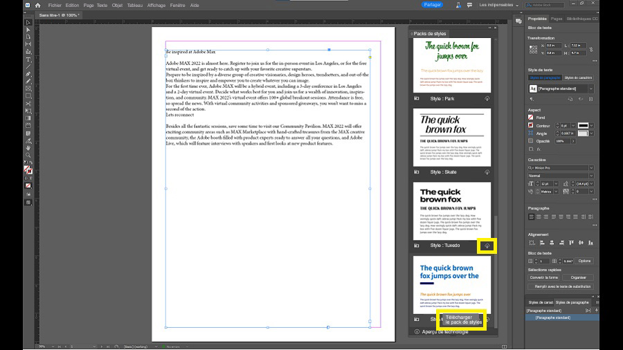 Les packs de styles sont disponibles dans l’onglet Styles de paragraphe. Vous pouvez en télécharger autant que vous voulez et tester différents styles pour savoir quelles couleurs et polices conviendront le mieux.