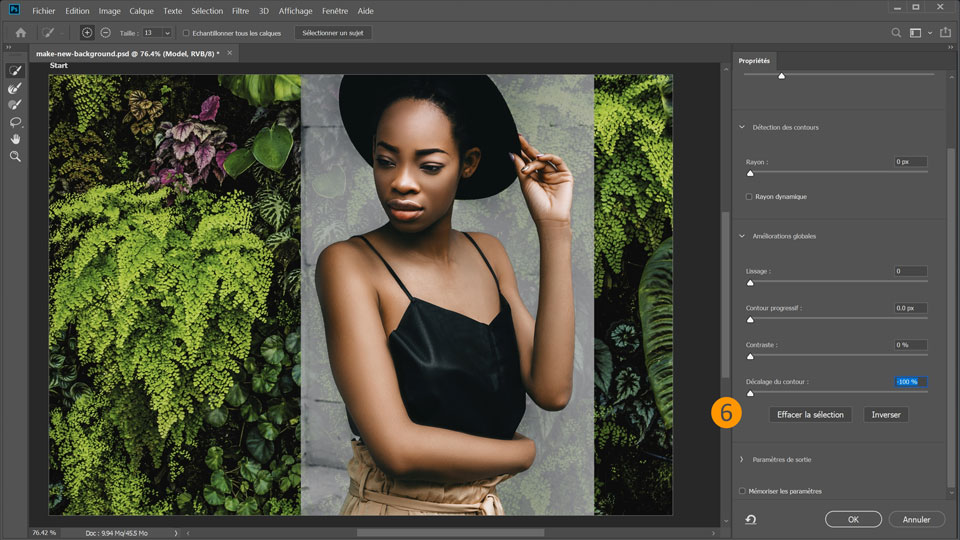 Remarque : lorsque vous quittez le mode Sélectionner et masquer, l’arrière-plan s’affiche de nouveau, puis il disparaît lorsque vous appliquez le masque.