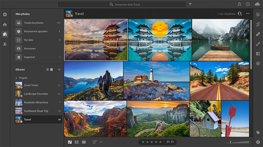Avec Lightroom, vous pouvez vous concentrer sur la photo sans vous soucier du stockage et de la gestion des images, car vous savez qu'elles sont en sécurité dans le cloud et accessibles, où que vous soyez. Si vous préférez stocker vos photos en local, optez pour Lightroom Classic, l'application complète pour ordinateur, qui demeure la référence pour les photographes du monde entier.