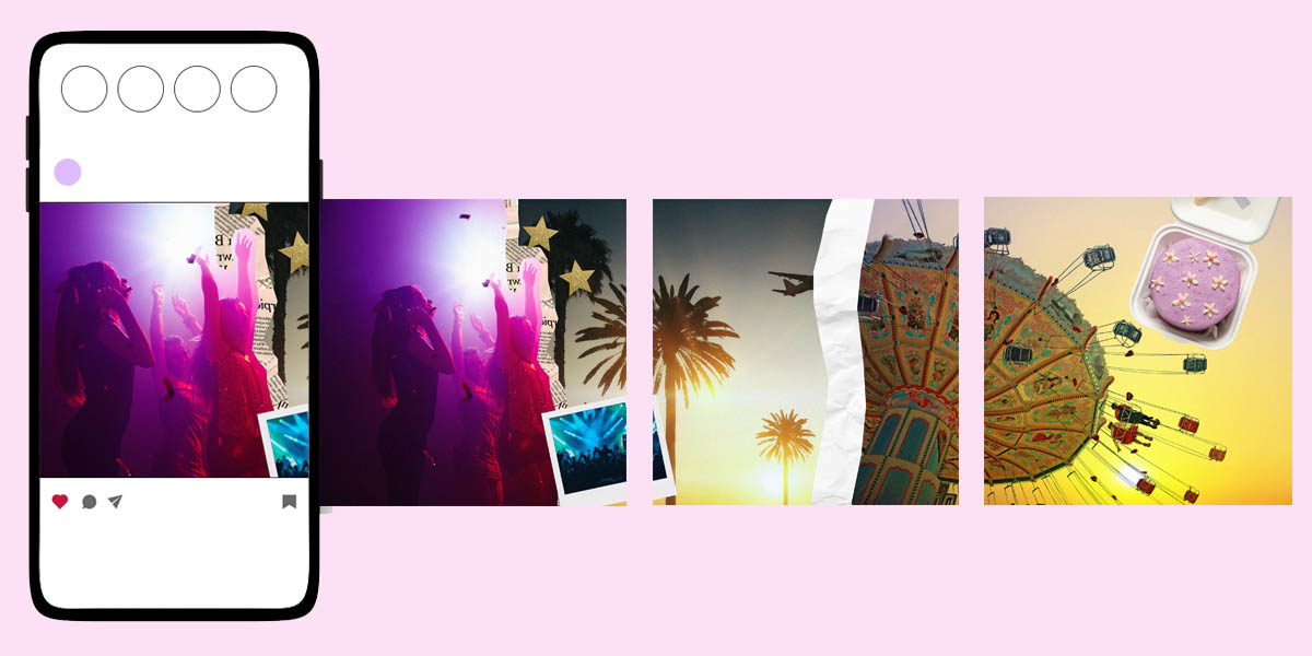 Ajoutez des images sur votre zone de travail et assemblez-les afin de créer une publication inédite pour les réseaux sociaux.