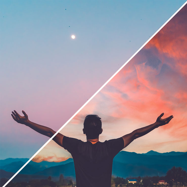 Grâce à sa fonctionnalité Remplacement du ciel, Photoshop gère tout à votre place.