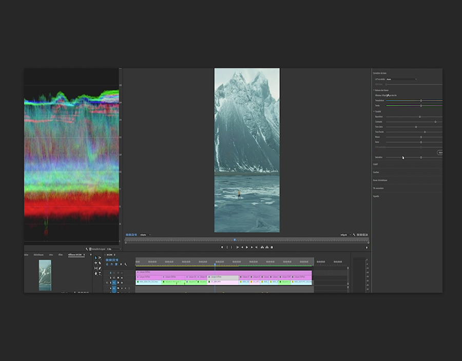 Conseil : si vous souhaitez effectuer des corrections de couleur différentes sur chaque séquence, utilisez l’outil Cutter pour adapter l’un de vos calques de réglage aux différentes séquences.