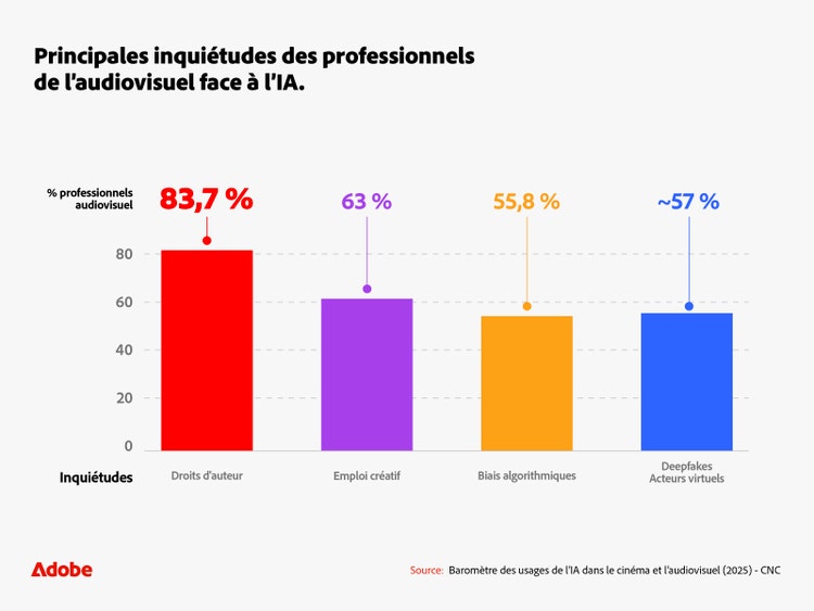 - 83,7 % des professionnels s'inquiètent des droits d'auteur (CNC, 2025)