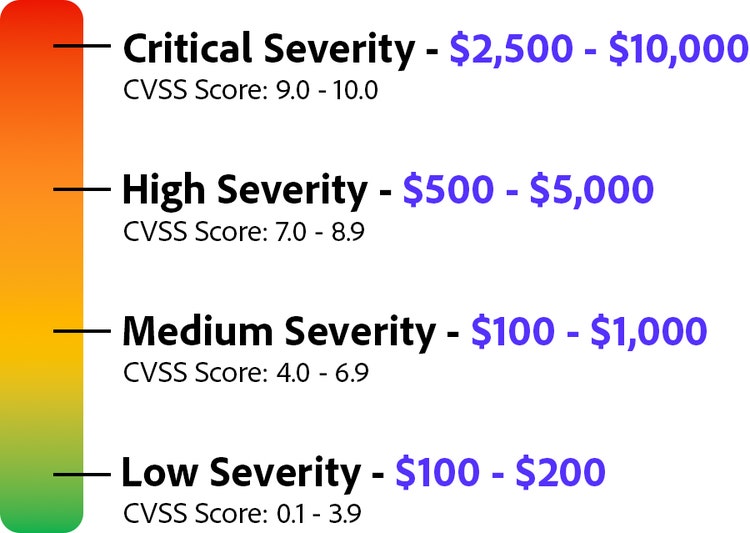 Adobe offre des récompenses financières en échange du signalement de vulnérabilités de sécurité dans le cadre de son programme public. Le montant d’une prime dépend de la gravité, de l’impact et de l’exploitabilité du problème signalé.