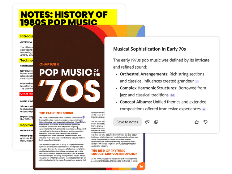 Convierte los apuntes de clase, materiales del curso y enlaces en centros de información impulsados por IA que te ayudan a sobresalir durante el año académico. Con PDF Spaces, puedes chatear con tus tareas para obtener información más rápido y con citas exactas.