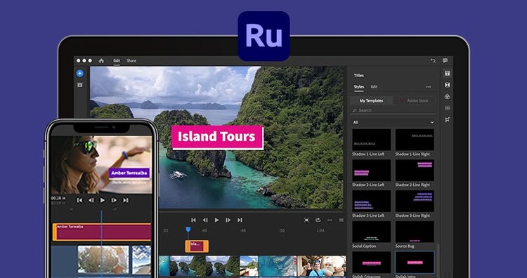 利用 Adobe Premiere Rush 內由藝術家所設計的動態圖形範本,修飾您的線上影片。