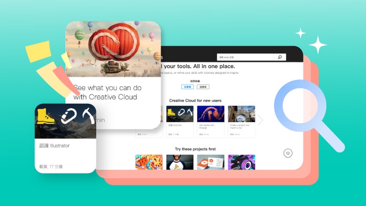 開始使用 Creative Cloud 時若遇到困難,歡迎參考這裡提供的教學課程和主要功能介紹,幫助您就此展開 Creative Cloud 體驗!