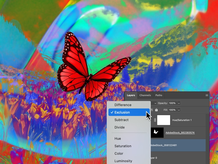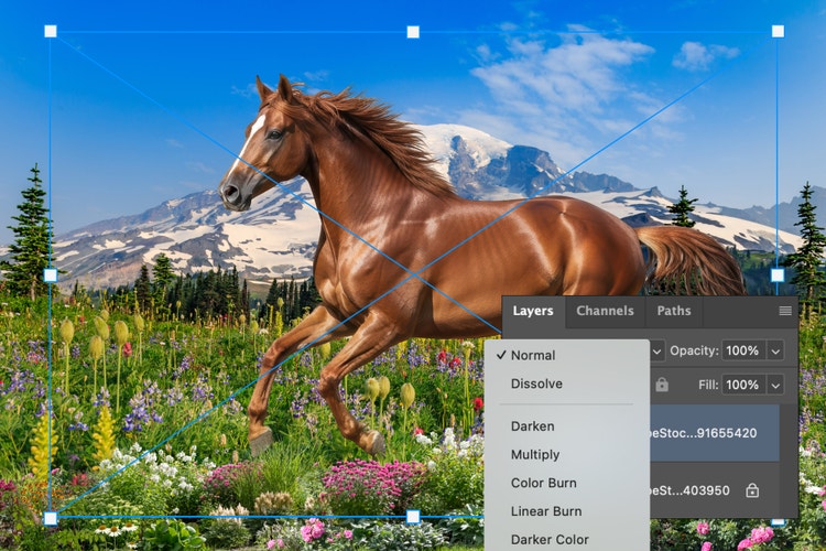 使用圖層設定 (如不透明度、混合模式或圖層遮色片) 來控制影像的互動方式。若要無縫符合,請使用「調和」功能自動對齊覆蓋影像的色彩和色調與您的底圖。無論您想要細緻紋理或完整疊加,Photoshop 工具都能協助您創造完美構圖。