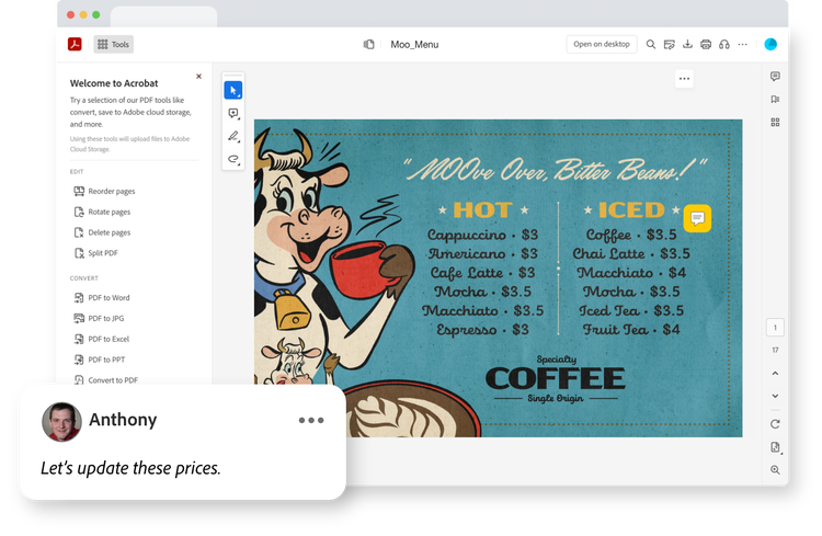 Gépelési hibát talált? Módosítani szeretne egy képet? Néhány kattintással máris szerkesztheti a PDF-fájlokat a böngészőben.