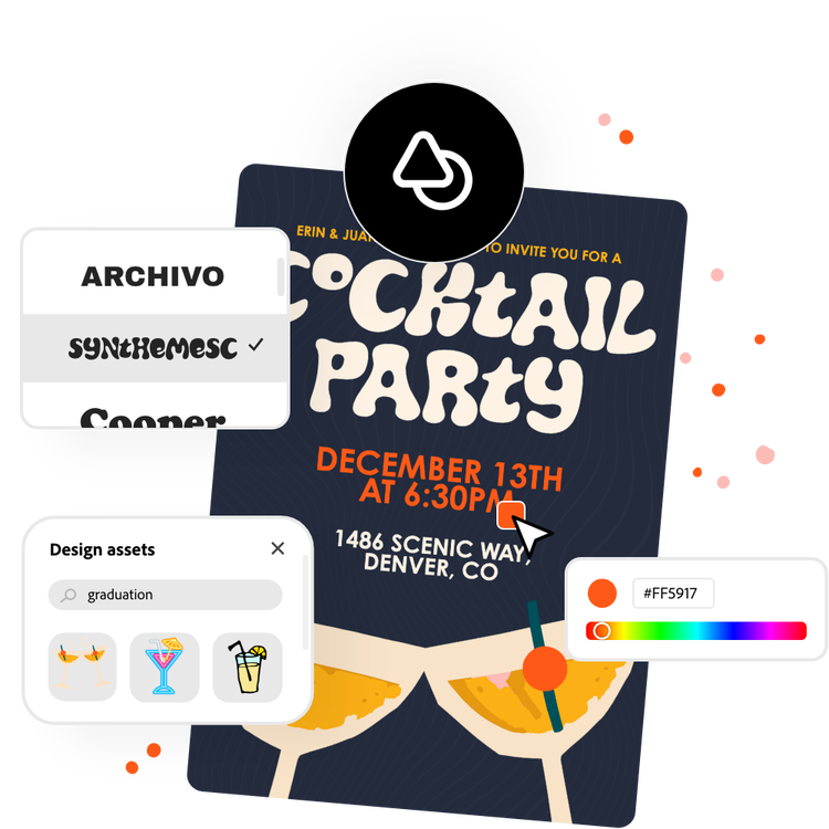 Biarkan Adobe Express menjadi ahli desain undangan pesta Anda.