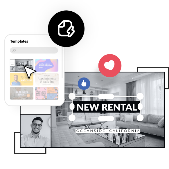 Biarkan Adobe Express menjadi pembuat postingan Facebook pilihan Anda.