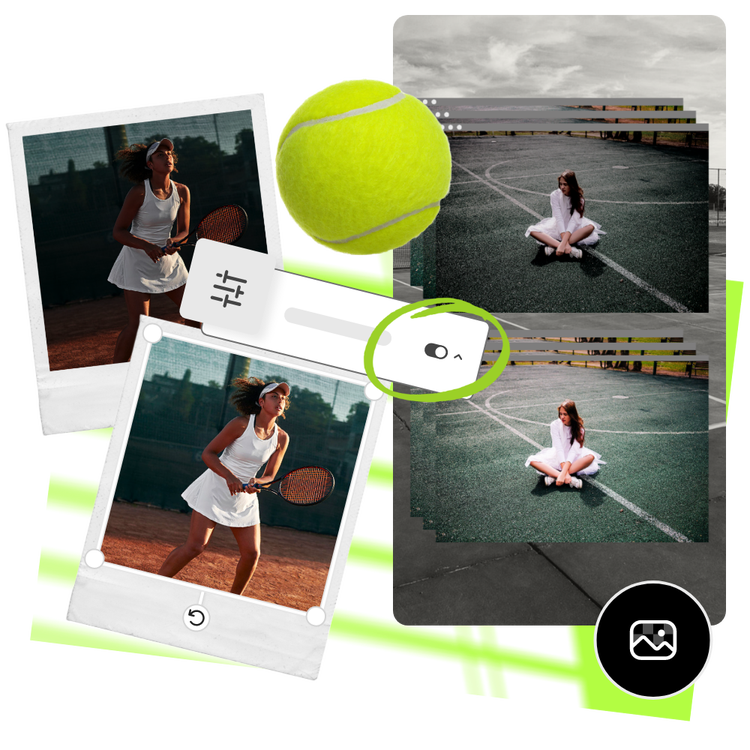 Gunakan alat ini untuk meningkatkan kualitas foto dalam sekejap. Cukup Alihkan opsi Penyesuaian dan saksikan alat intuitif kami secara otomatis meningkatkan kualitas gambar dalam hitungan detik. Atur gambar Anda sebagai latar belakang dan terapkan opasitas secara instan, lalu lapisi teks di atasnya untuk efek visual yang segar.
