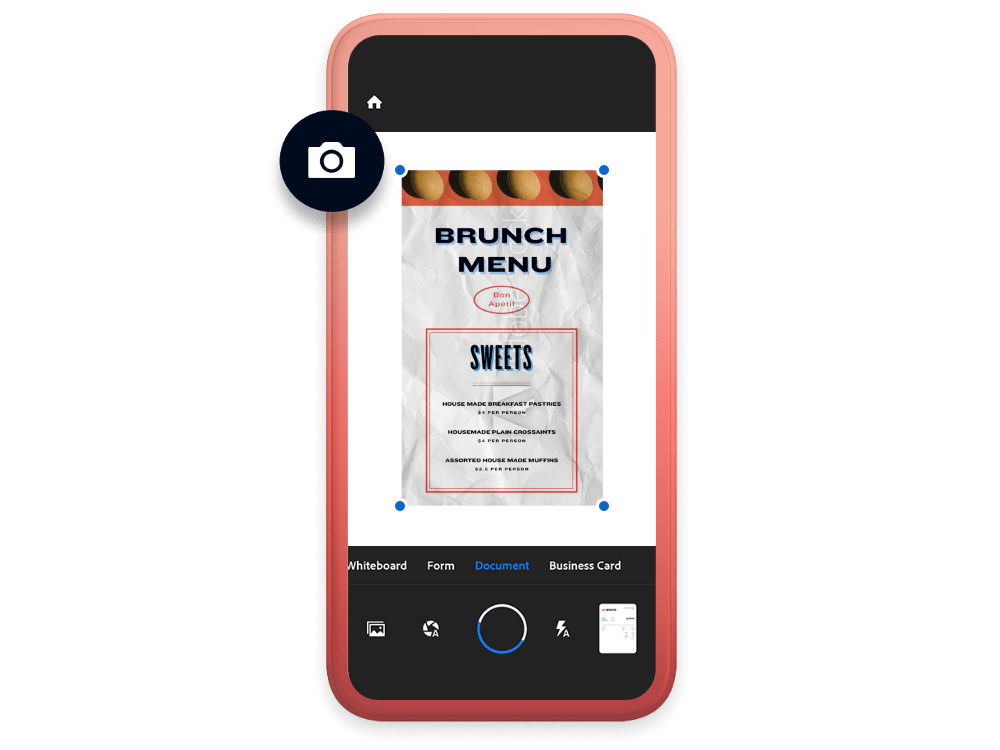 With the Adobe Scan mobile app, you can scan any document or image and save as a PDF. Using Adobe Acrobat and Acrobat Reader, the best PDF editor and viewer apps around, you can turn it into a PDF file with text that can be searched and edited on the fly.
