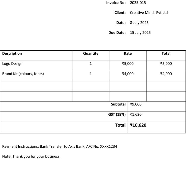 Example: A freelance graphic designer invoice.