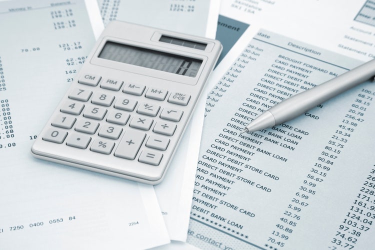 pdf to excel tutorial with bank statements, calculator, and pen highlighting transaction data