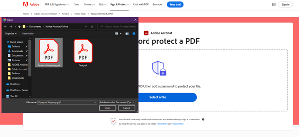 Step 1: Go to Adobe Acrobat online services on your browser and navigate to the online Password protection tool.