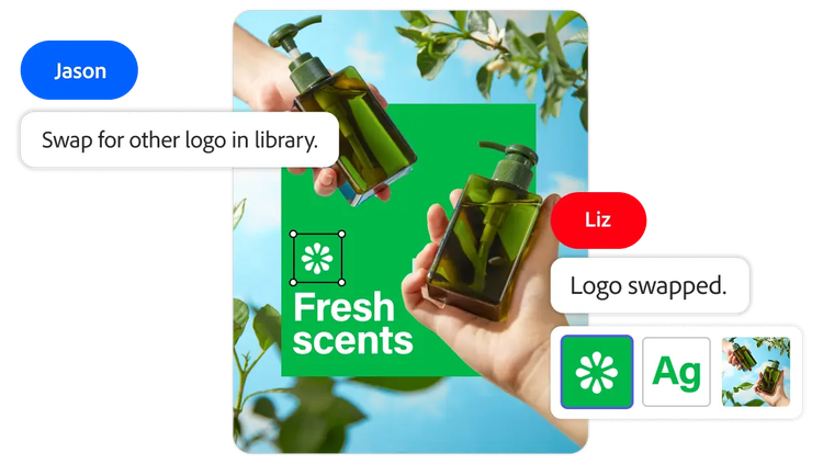 Keep every piece of content in sync. Easily access your approved brand assets. Quickly review and approve designs. All without leaving the app you're already in.