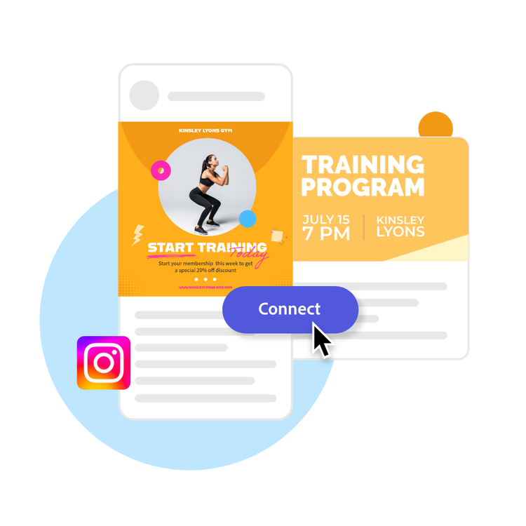 If you want to add even more design elements to your Instagram ad—like animations, charts, or audio —just go to the full Adobe Express editor. Establish a theme for your designs using photos, icons, logos, personalized fonts, and other customizable elements to make them feel entirely authentic. Duplicate designs and resize them to create consistency across multiple types of assets.