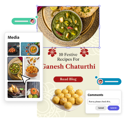 Banners are flexible and fun. Celebrate the festival by using our free templates for all your Ganesh Chaturthi banners. Choose a layout; mix up the colours, type and images. No experience required.
