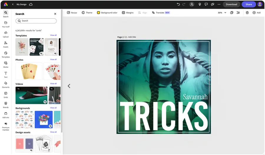 Explore professionally designed templates to get your wheels spinning, or design your CD cover from scratch. Establish a theme for your designs using photos, icons, logos, personalized fonts, and other customizable elements to make them feel entirely authentic. With Adobe Express, it’s free and easy to make, save, and share your designs within minutes so you can add collaborators, get approval, and debut your best CD cover artwork yet.