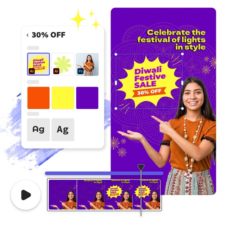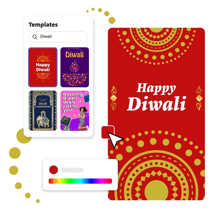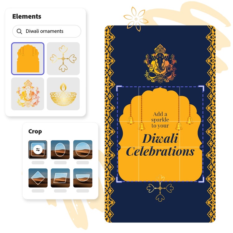 With all the fun happening during the five-day Diwali festival, you'll have have lots of stories to share. Save time and be prepared by making your Diwali highlight cover for Instagram in advance. Whether you want to feature the candid smiles of your friends or the sheer delight of celebrating, customized story covers are a great way to draw people into your world. Start with an Instagram story template and add images from the Adobe Express library or upload your own. Keep in mind that only a small portion of the image will be shown, so keep your design centered. Add it to Instagram and go out and enjoy the amazing lights, great vibes, and happy delights of the festival.