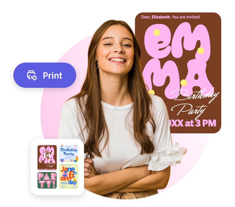 Download your birthday invitation as a PDF, JPG, or PNG file to share anywhere. If you’re a US, UK, Australia or Canada desktop user, you can order high-quality prints from Adobe Express and have them delivered to you.