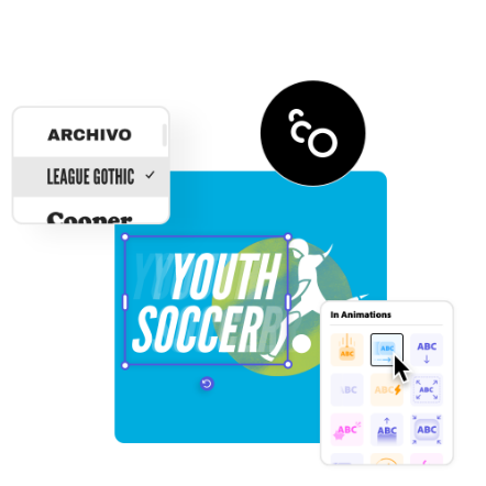 Want to generate buzz for your team’s next game or capture the attention of fans and new followers? Further personalize your soccer logo with one-click animated effects, then share it as a social post or Instagram Story. Select from tons of animation styles to apply to the text or images in your logo. When you’re finished, download your animated logo as an MP4 file to share online or add it to your video intros, blog, or website.