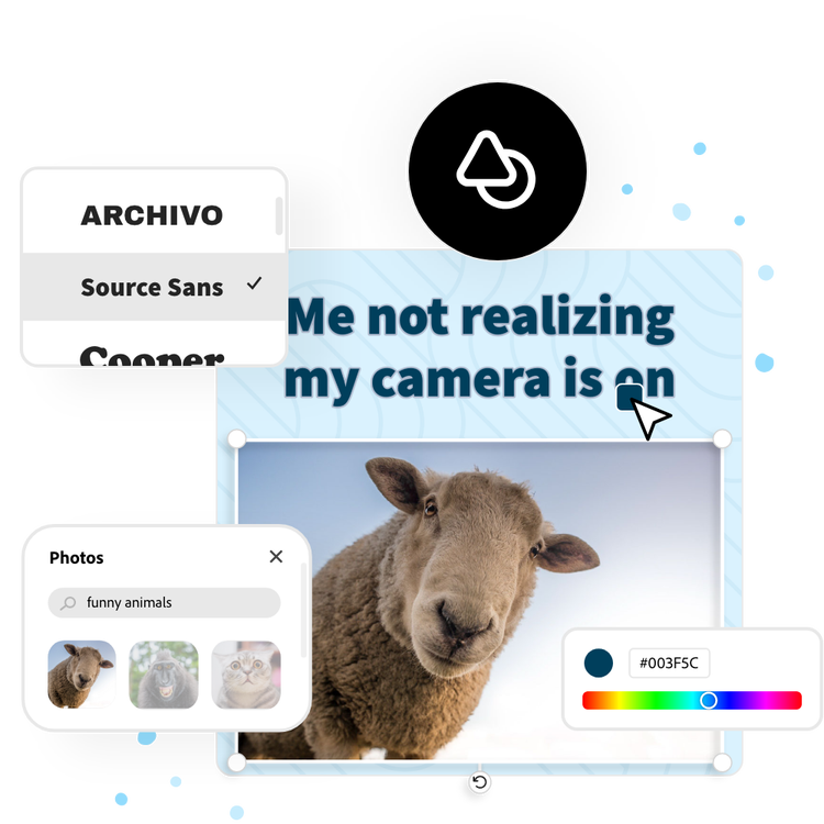Explore professionally designed templates to get your wheels spinning or create your text meme from scratch. Establish a theme for your designs using photos, icons, logos, personalized fonts, and other customizable elements to make them feel entirely authentic. With Adobe Express, it’s free and easy to make, save, and share your designs within minutes.