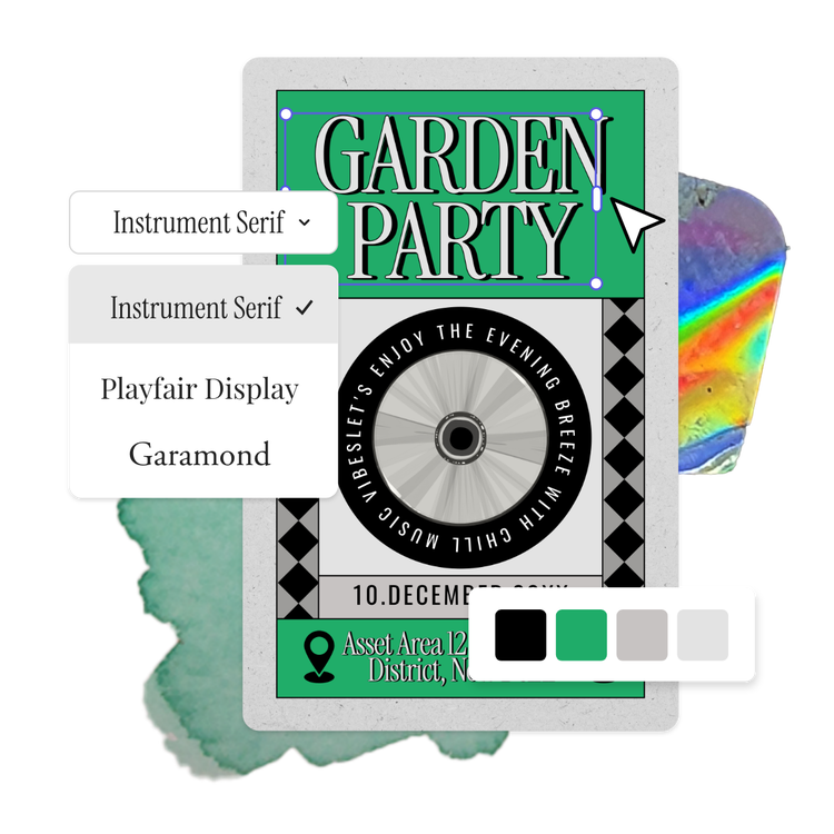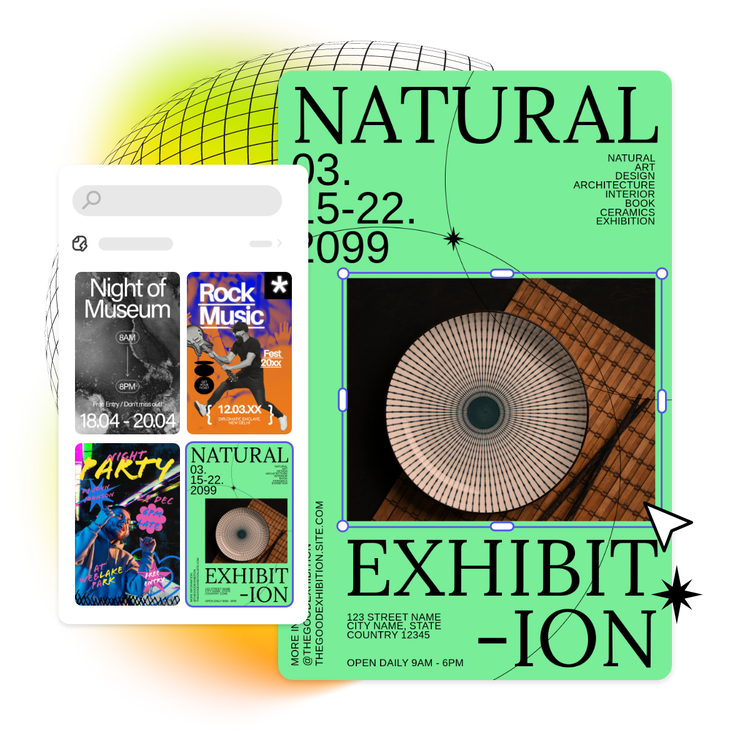 Explore professionally designed templates to get your wheels spinning or create your event poster from scratch. Establish a theme for your designs using photos, icons, logos, personalized fonts, and other customizable elements to make them feel entirely authentic. With Adobe Express, it's free and easy to make, save, and share your designs within minutes.