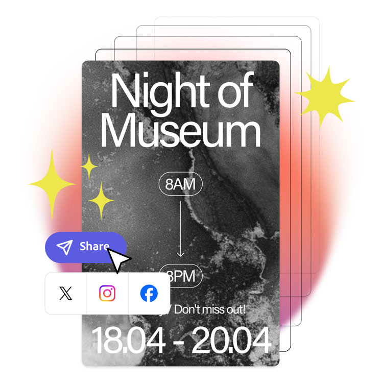With the power of Adobe Express, you can take your event to the next level. Once you create your poster, share it with friends and family through social media or email. There are endless creative opportunities to stir up excitement.