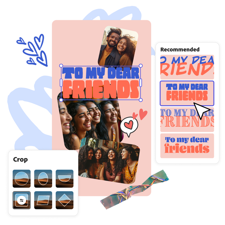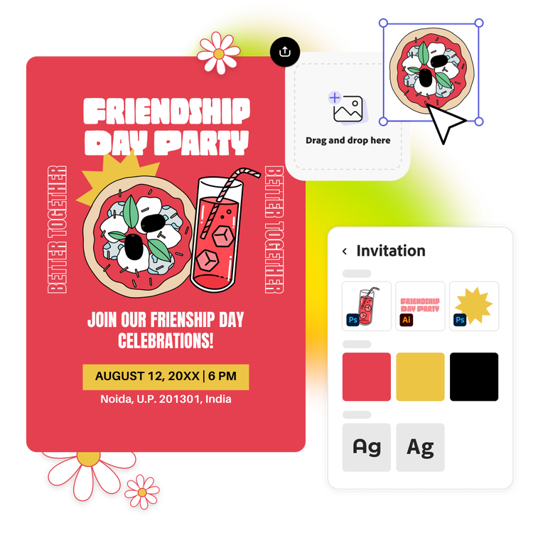 Get your business front and centre with an International Friendship Day poster. Upload your logo onto the design and, drag and drop to where you want it. You can write your message in your own brand font by bringing this into Adobe Express. Next, add your own images or make use of the Adobe Express library. To make sure everything looks perfect, explore the grid layouts. These are ideal for photo collages and making your poster eye catching and well balanced. You can adjust the spacing between photos and add or remove images with ease.