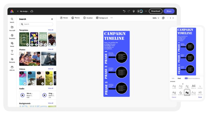Launch Adobe Express from your browser and search “timeline” to get started. You can also download Adobe Express app to start editing your timeline on mobile.Get started with a free timeline template.