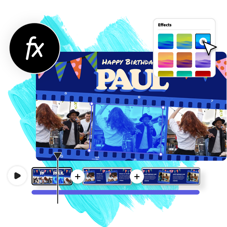 You’ll want to post regularly to boost engagement and grow followers Instagram. Adobe Express makes video editing quick and easy for all skill levels – upload your video clips, crop and trim to your liking, and rearrange clips on your timeline. Enhance your video even further when you apply unique duotone filters, eye-catching transitions to clips, and animation effects. The possibilities are endless with Adobe Express at your side.