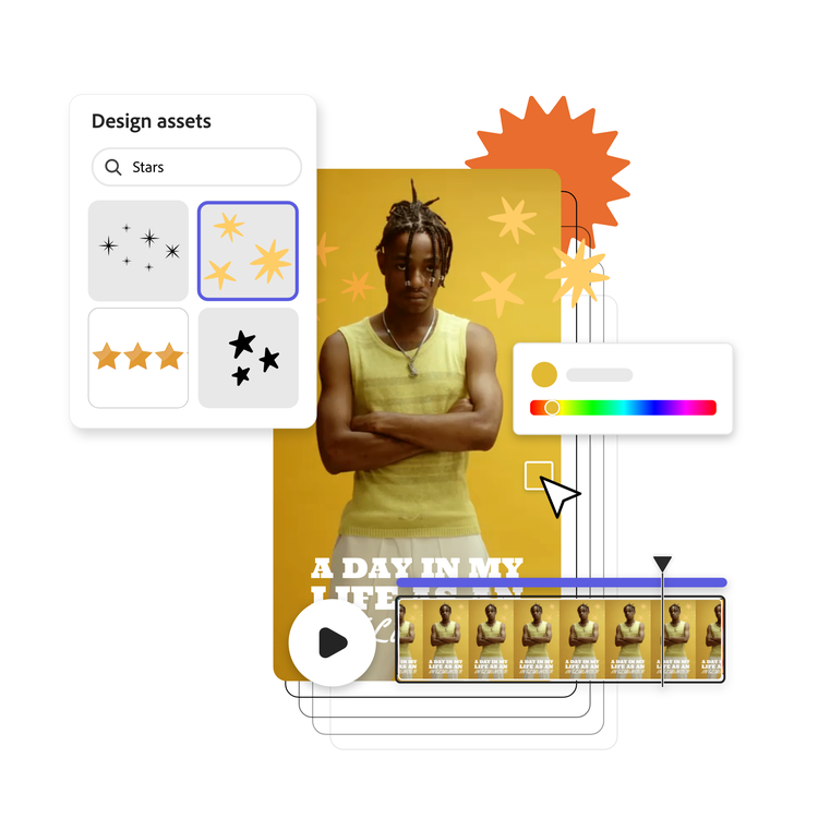 Start your video editing off right with free, premade video intro templates that will captivate your audience. Search by style and color or browse freely until you find something that catches your eye. Adobe Express also hooks you up with thousands of free design assets such as graphics, icons, color combinations, and even font pairing recommendations you can add to your project in seconds. Stay inspired with Adobe Express by your side.
