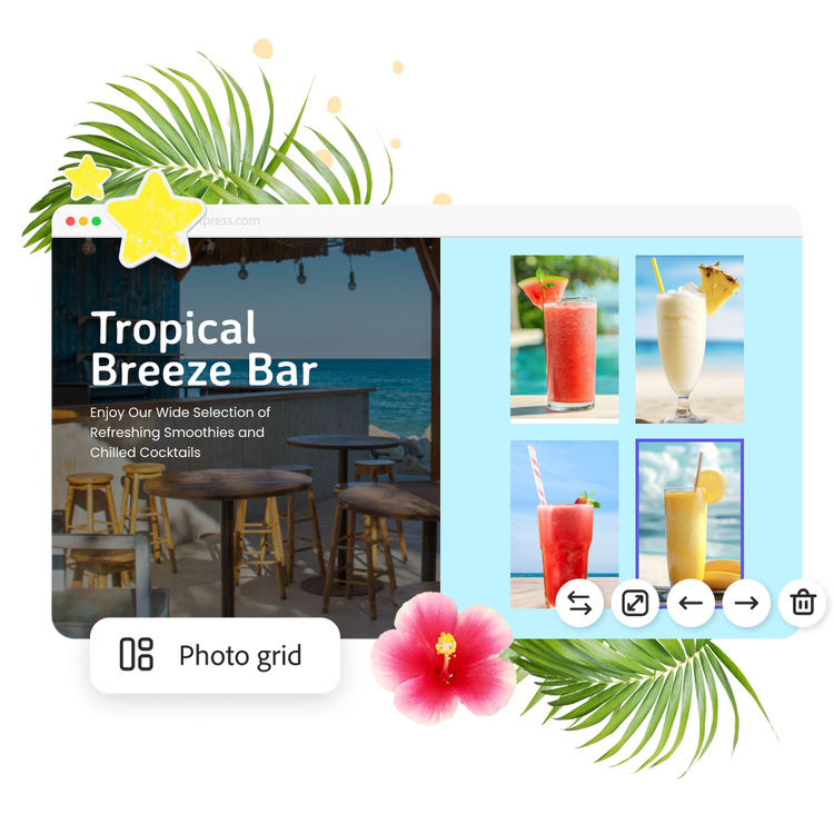 Whether you’re looking to showcase your eatery’s menu or creating an event landing page for your business, take advantage of all the customization options at your side. Display photos, videos, and text in an engaging way with photogrids and slideshows that’ll stop your audience in their tracks. Plus, invite them to learn more with standout call-to-action buttons.