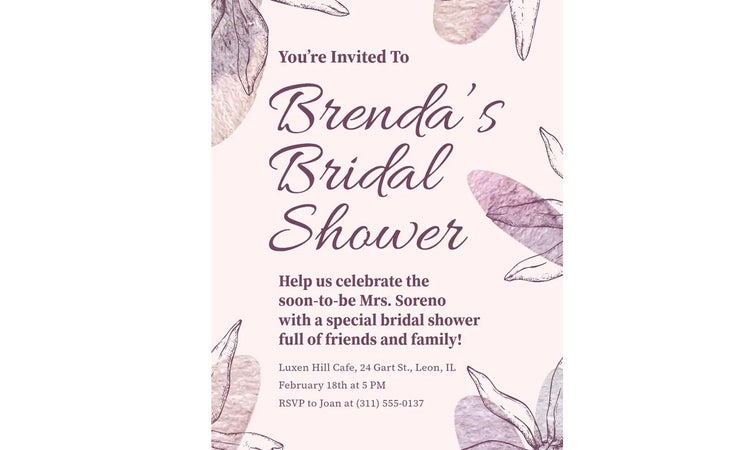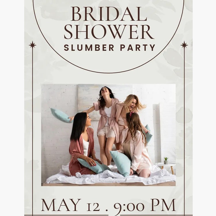 Curious about when to throw a bridal shower? Or who should be included on the guest list? Whether you follow traditional bridal shower etiquette or prefer something more fluid, the most important thing is to consult the bride-to-be to understand her ceremony timeline and preferred guests. Ideally, the bridal shower takes place 3-6 months before the wedding and prior to the bachelorette party. The guest list will traditionally include the bride's female friends and family members. Use Adobe Express to create gorgeous bridal shower invitations with the date, time, venue and dress code.